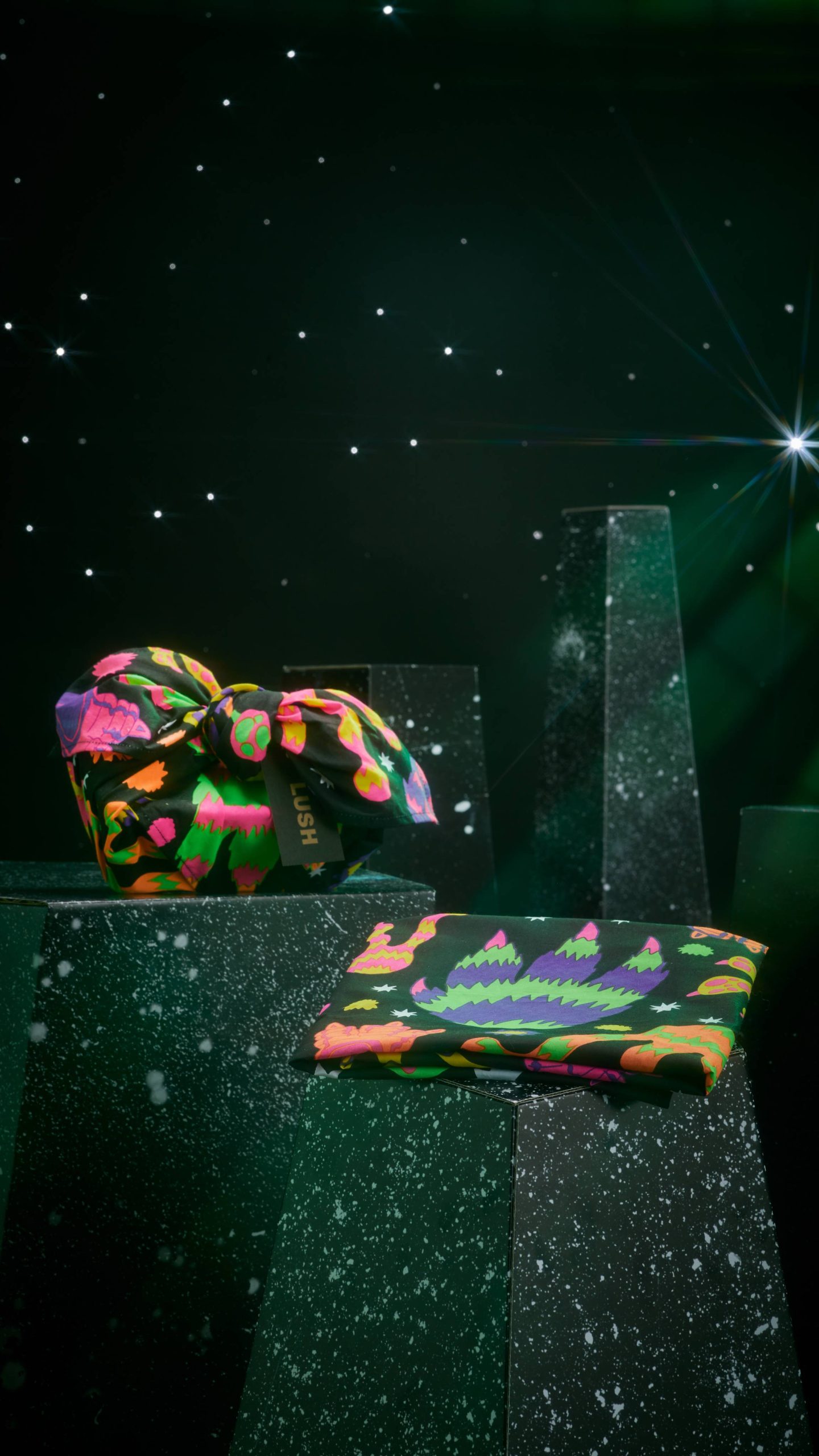 Made from 100% organic cotton, this Knot Wrap is made by the talented artisans of Re-Wrap, a social enterprise in India focusing on environmental and social change. Measuring 27.5′ x 27.5′ and showcasing a design that harks back to the vibrant colors of the ’90s, Hairy Monster Feet’s nostalgic design makes a perfect luxury gift wrap for your favorite Lush products, as well as a gruesomely good seasonal scarf or bandana.