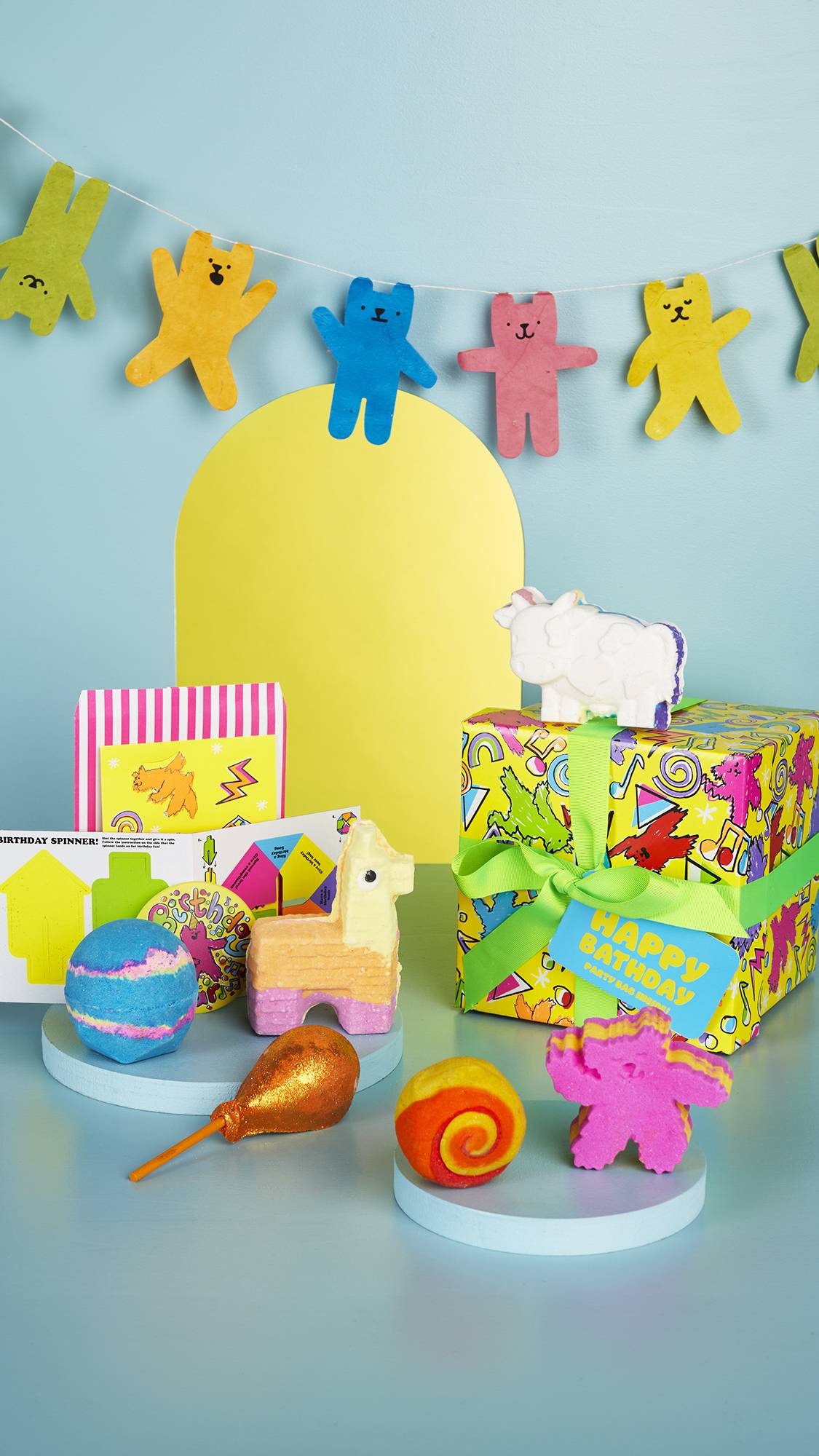 Every day is a happy bathday with this collection of six bathtime goodies including bestsellers and party exclusive products. Year-round favorites Brightside Bubble Bar, minty Intergalactic and colorful Toby’s Magic Cow Bath Bombs are the life and soul of any shindig and are perfect to kick things off. The real guests of honor are the exclusives! Pop bubbles instead of balloons with Party Balloon Reusable Bubble Bar, bring citrusy color to the tub with Birthday Bear Bath Bomb, or choose Calm A Llama, the bathtime piñata that has no probllamas creating good vibes. Everything you need to get your party started!