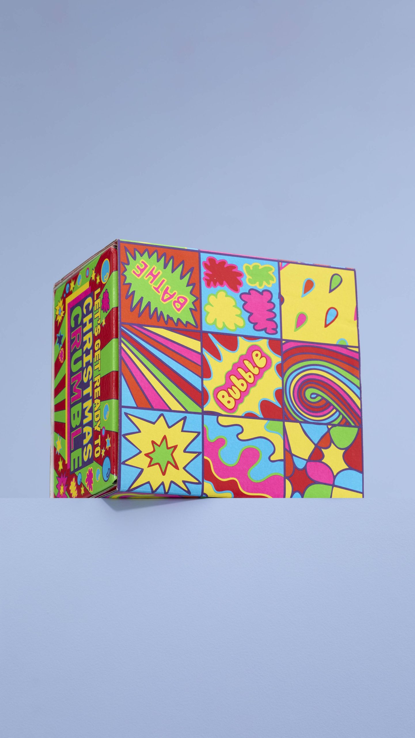 Lush Creative Artworker Georgia Haywood, says, “This gift design was inspired by the bold colors, iconic motifs and punchy patterns of the Pop Art movement, blended with the playful themes of bubbles and festive bath time fun.”