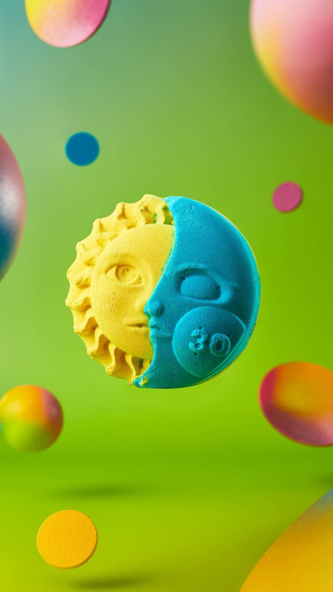 Unlike star-crossed lovers in the sky, this golden sun and blue moon merge together for a gorgeous green soak. The perfect gift for the one who calms you yet brings radiant energy into your life.