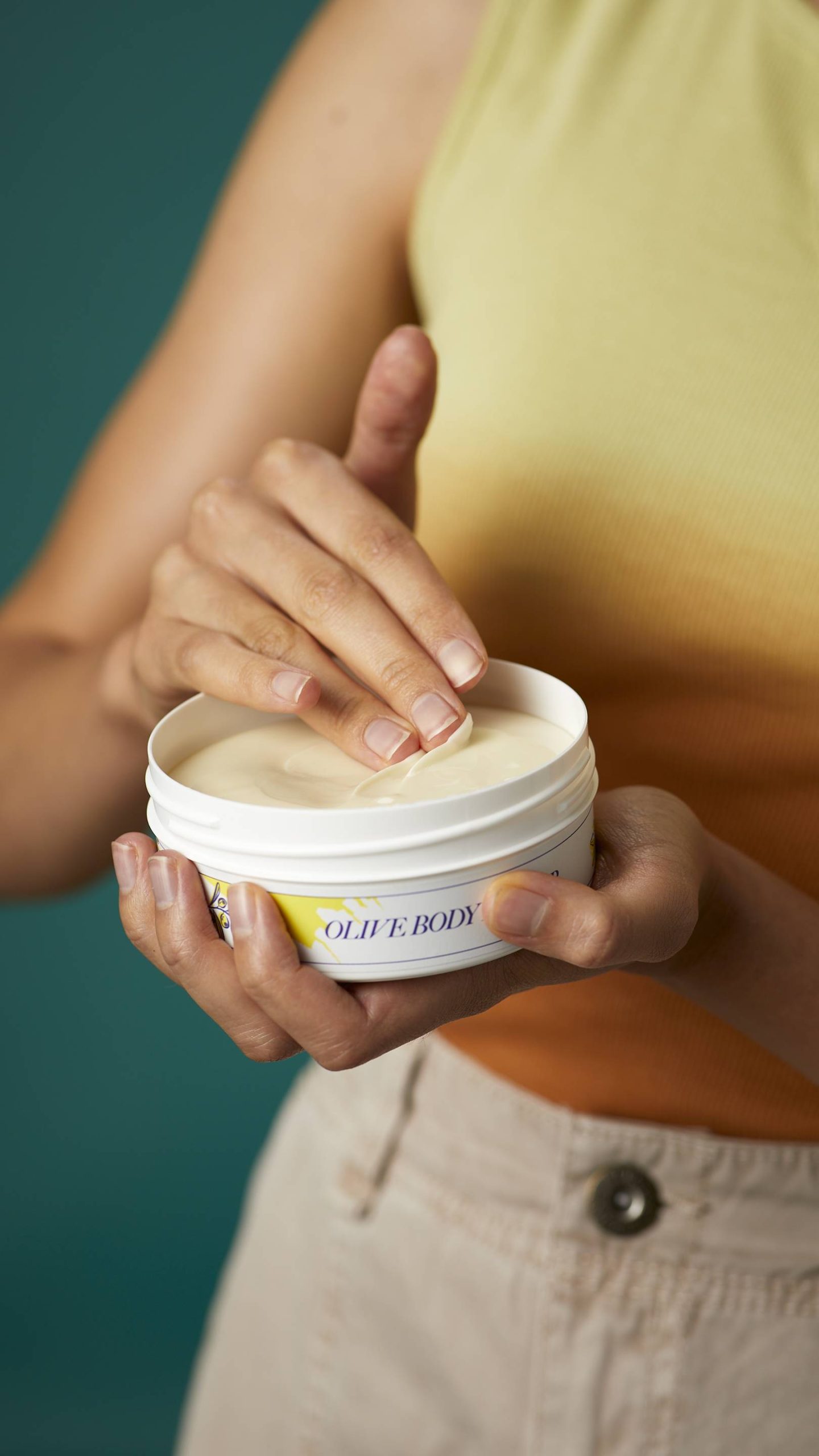 How to use: Massage into dry skin (and rub olive over!) after bathing or showering, paying extra attention to drier areas.