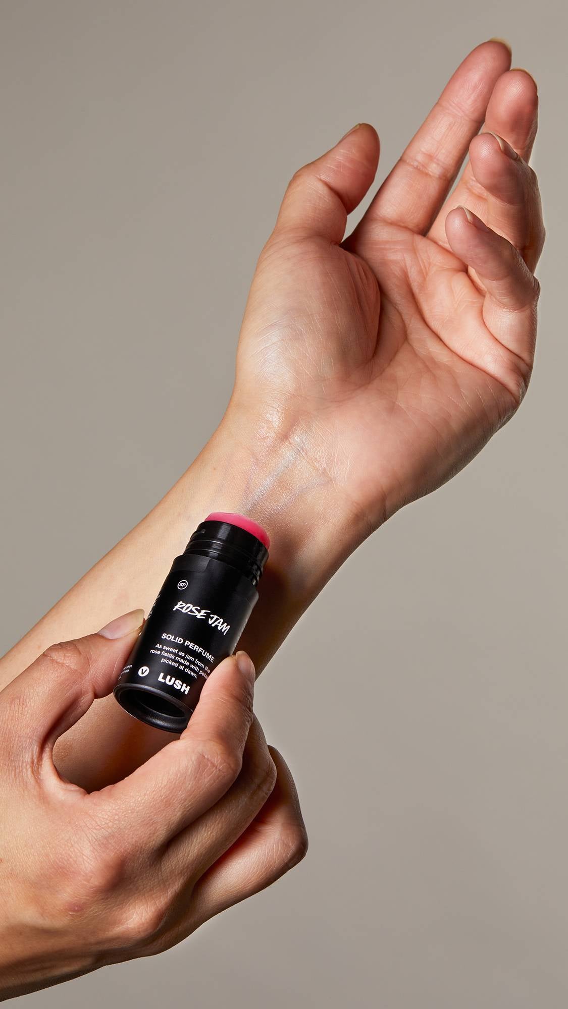 How to use: Push up gently, apply to your pulse points and massage in. Use your wrist to gently push the perfume back into its packaging.