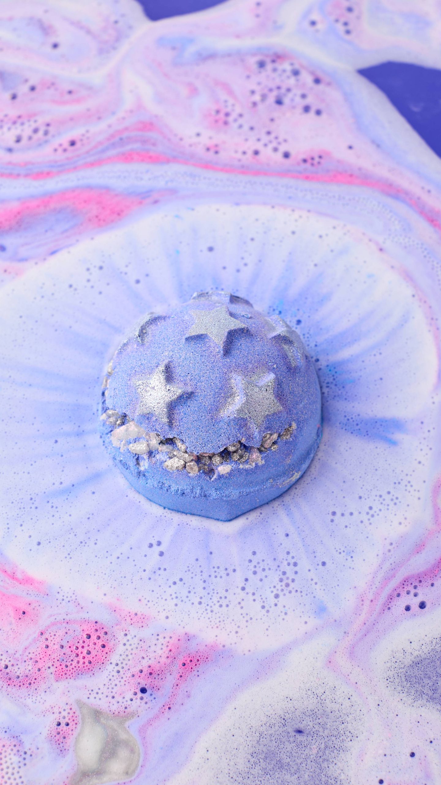 – Wrapped up in midnight blue, a hidden layer of pink, transforming your bath into a delicate purple nightscape.