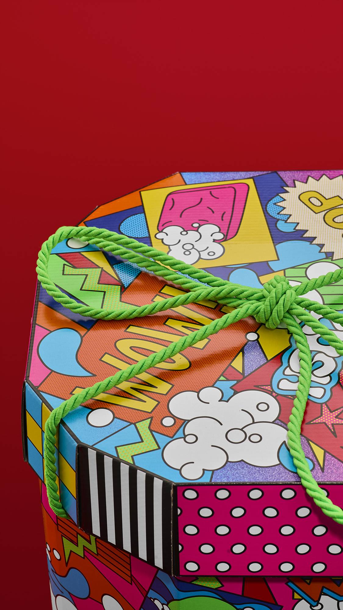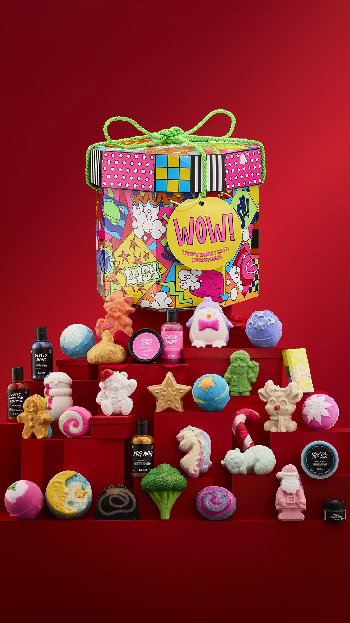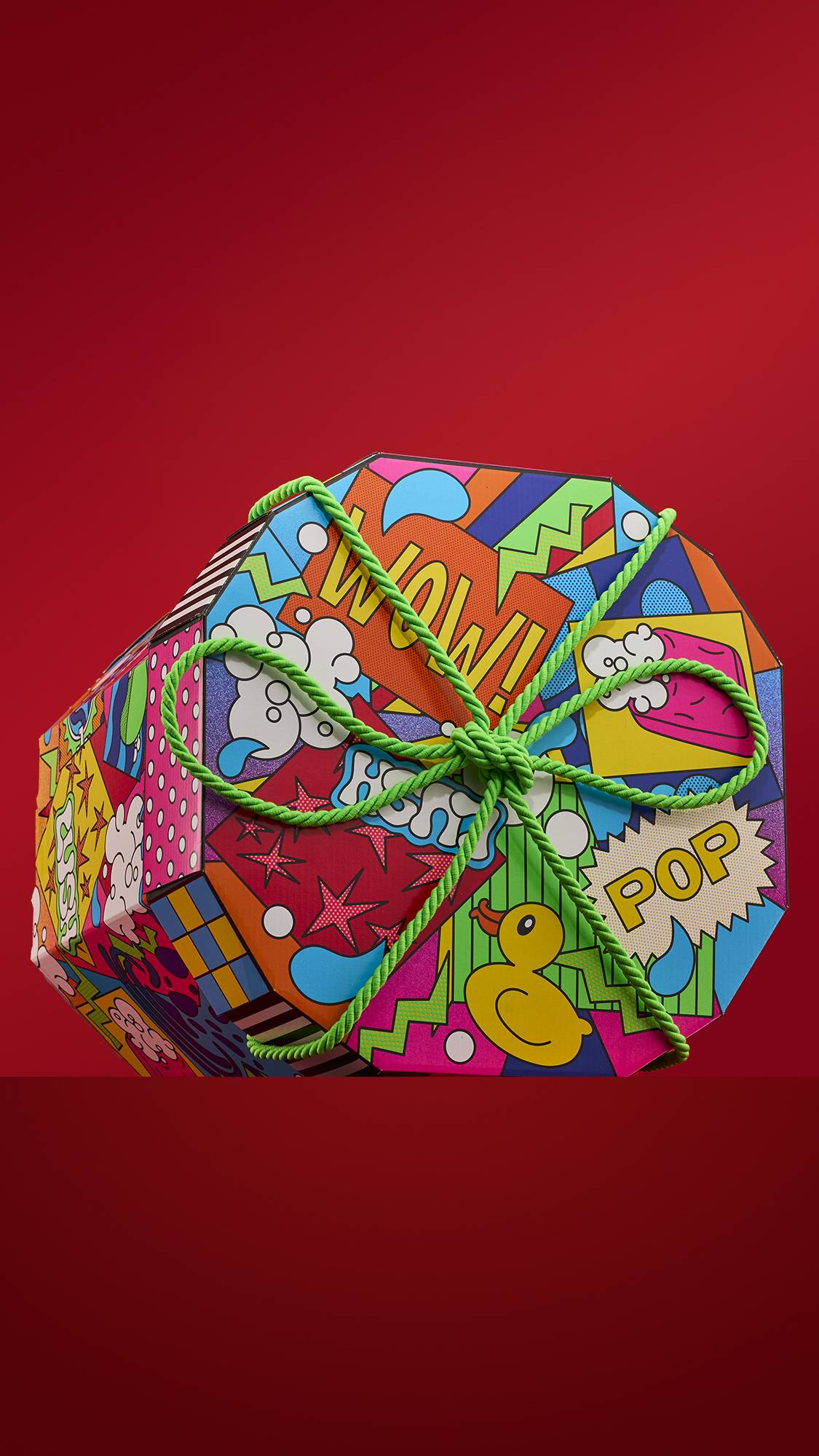 This gift was designed by a collection of designers from Lush U.K. and North America. We heard the following through the grapevine: “Lush meets pop art in a bold, joyful collision of color, pattern, and play! A celebration of bathing as vibrant self-expression through bold blocks of electric color and eye-popping patterns colliding with juicy halftone patterns. A riot of neon nostalgia and joyful illustrations that turn every splash, soak, scrub into a pop-powered masterpiece.”
